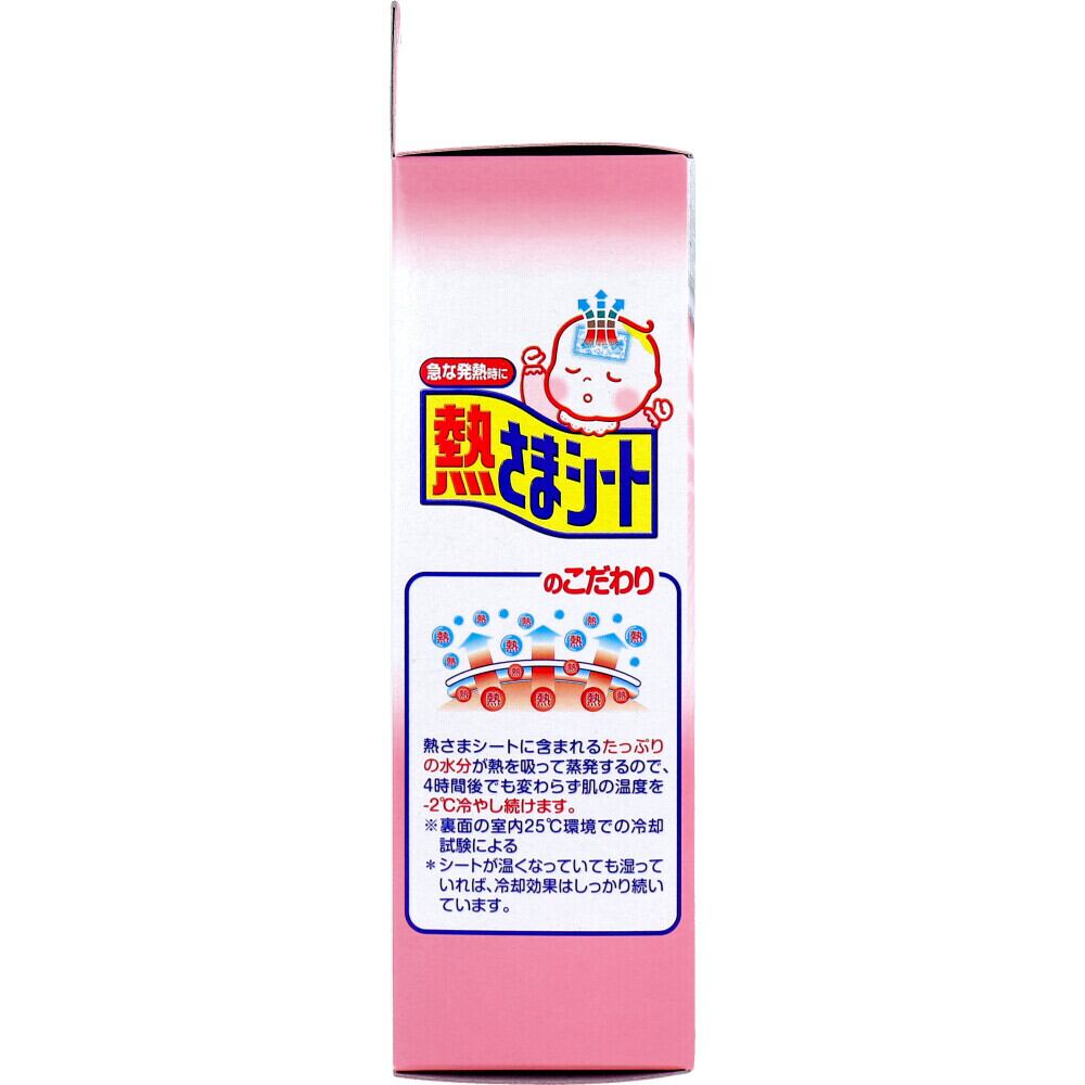 ●熱さまシートのこだわり:熱さまシートに含まれるたっぷりの水分が熱を吸って蒸発するので、4時間後でも変わらず肌の温度を-2度冷やし続けます。